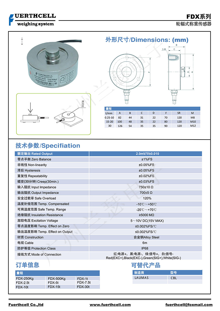 美國(guó)FUERTHCELL FDX-500KG稱重傳感器產(chǎn)品參數(shù):