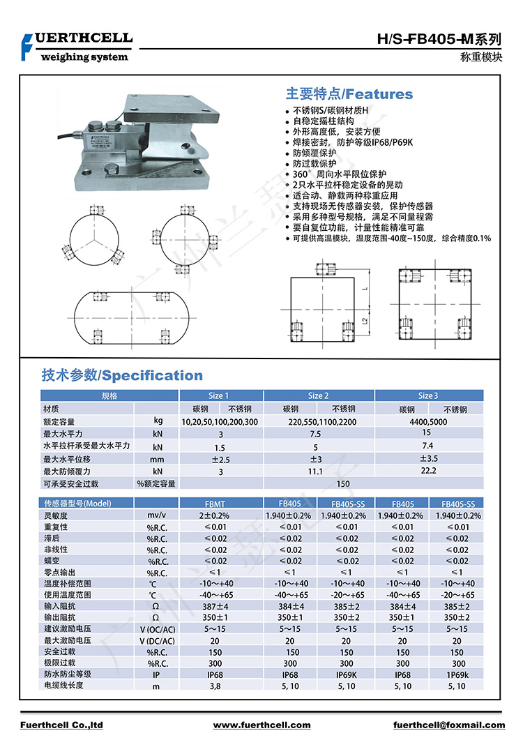 美國FUERTHCELL FB405-2T稱重模塊產品參數: