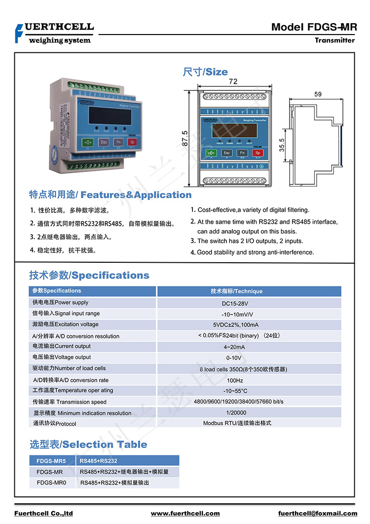 美國FUERTHCELL FDGS-MR稱重儀表產品參數: