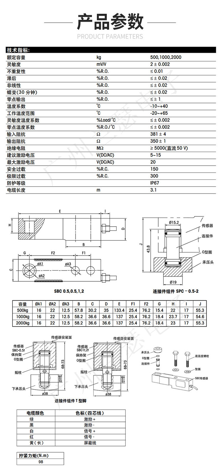 注:SBC-0.5是梅特勒-托利多傳感器中容量為500KG(0.5T)。所以容量為0.5t,那么型號就是SBC-0.5。以止類推得到SBC系列的所有型號。
