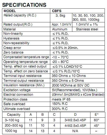 CBFS-10KG,CBFS-10KG稱重傳感器,Bongshin CBFS-10KG傳感器主要特性: