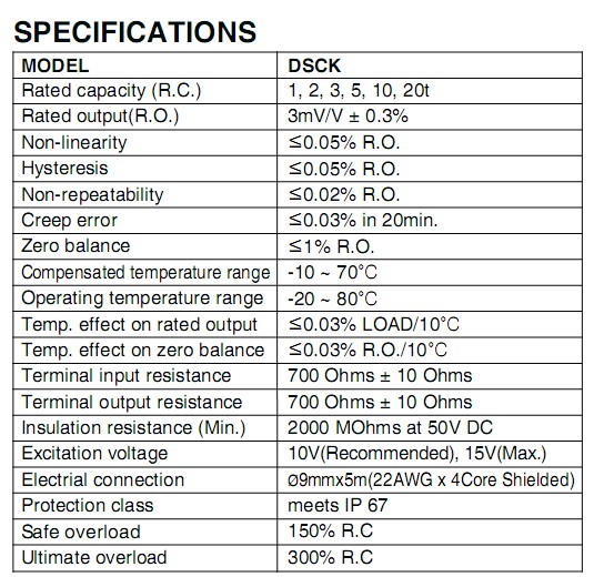韓國(guó)bongshin DSCK稱重傳感器技術(shù)參數(shù):