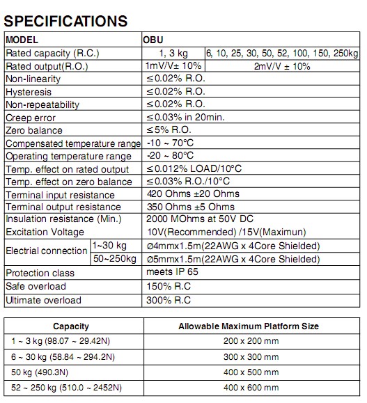 韓國(guó)BONGSHIN OBU稱重傳感器主要特性:
