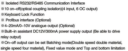 XK3101+控制儀表是面向工業(yè)控制領(lǐng)域的稱重顯示控制器。具有多種竄行通訊接口(Modbus)、開關(guān)量輸入與輸出接口、可擴(kuò)展模擬量接口,開關(guān)量輸出可配置四種方式,可以方便用于配料、定值、上下限檢測等場合。豐富的通訊接口能直接與DCS系統(tǒng)連接。儀表采用柜裝式鋁合金外殼,可以方便的嵌入控制柜。
