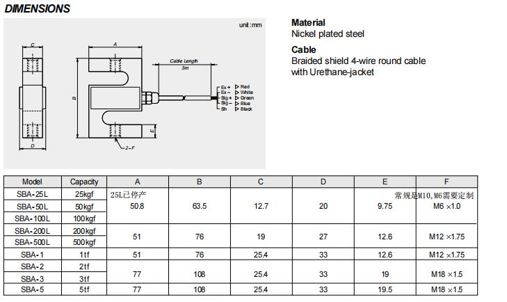 韓國CAS SB-50L傳感器技術參數: