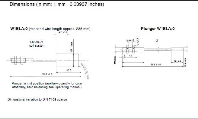 W1ELA/0-2 電感式位移傳感器 可以安裝在生產設備,測試設備和測量儀器中. 傳感器在4.8 kHz 載波頻率下測量精度為0.2.