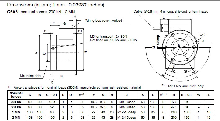 德國HBM C6A力傳感器尺寸