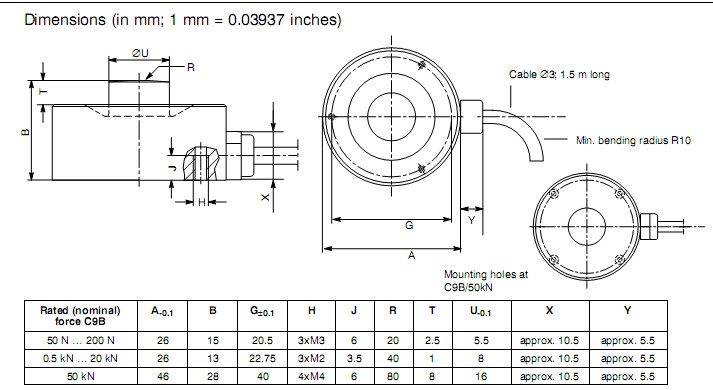 額定力: 50N, 100N, 200N, 500N, 1kN, 2kN, 5kN, 10kN, 20kN, 50kN