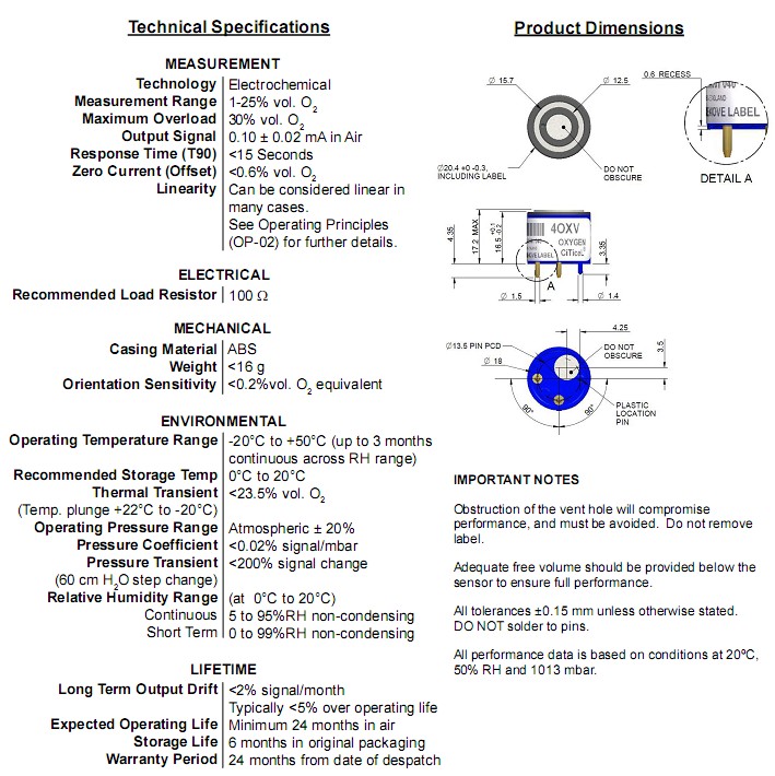 英國CITY 4OXV氧氣傳感器知識