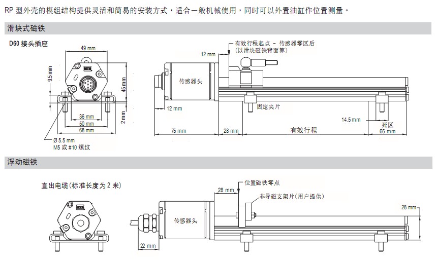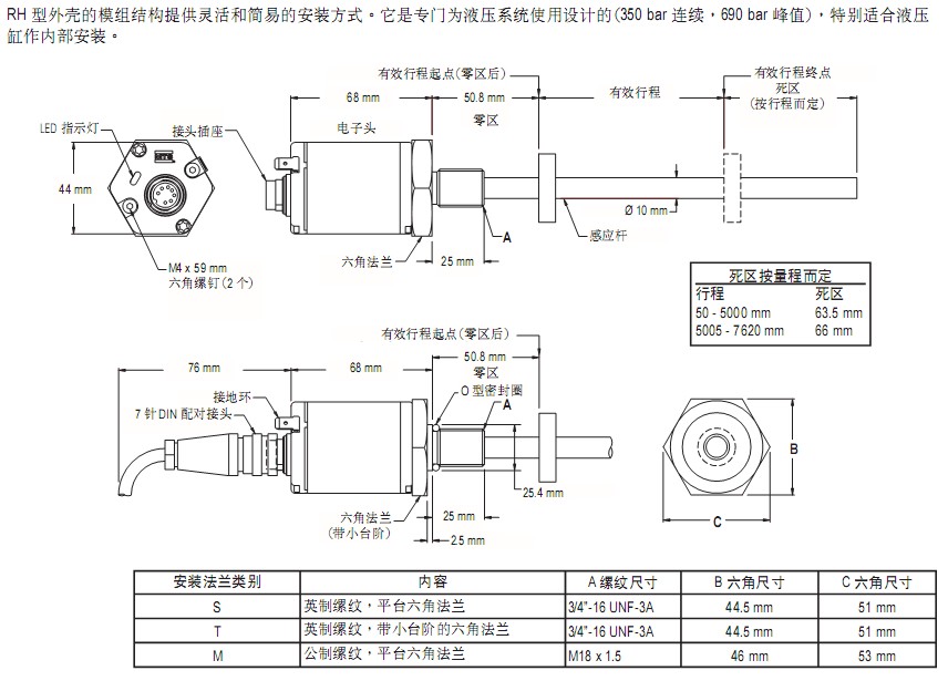美國MTS RP/RH系列直線位移傳感器尺寸