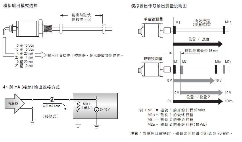 雙磁鐵輸出 磁鐵之間距離最少為 76 mm