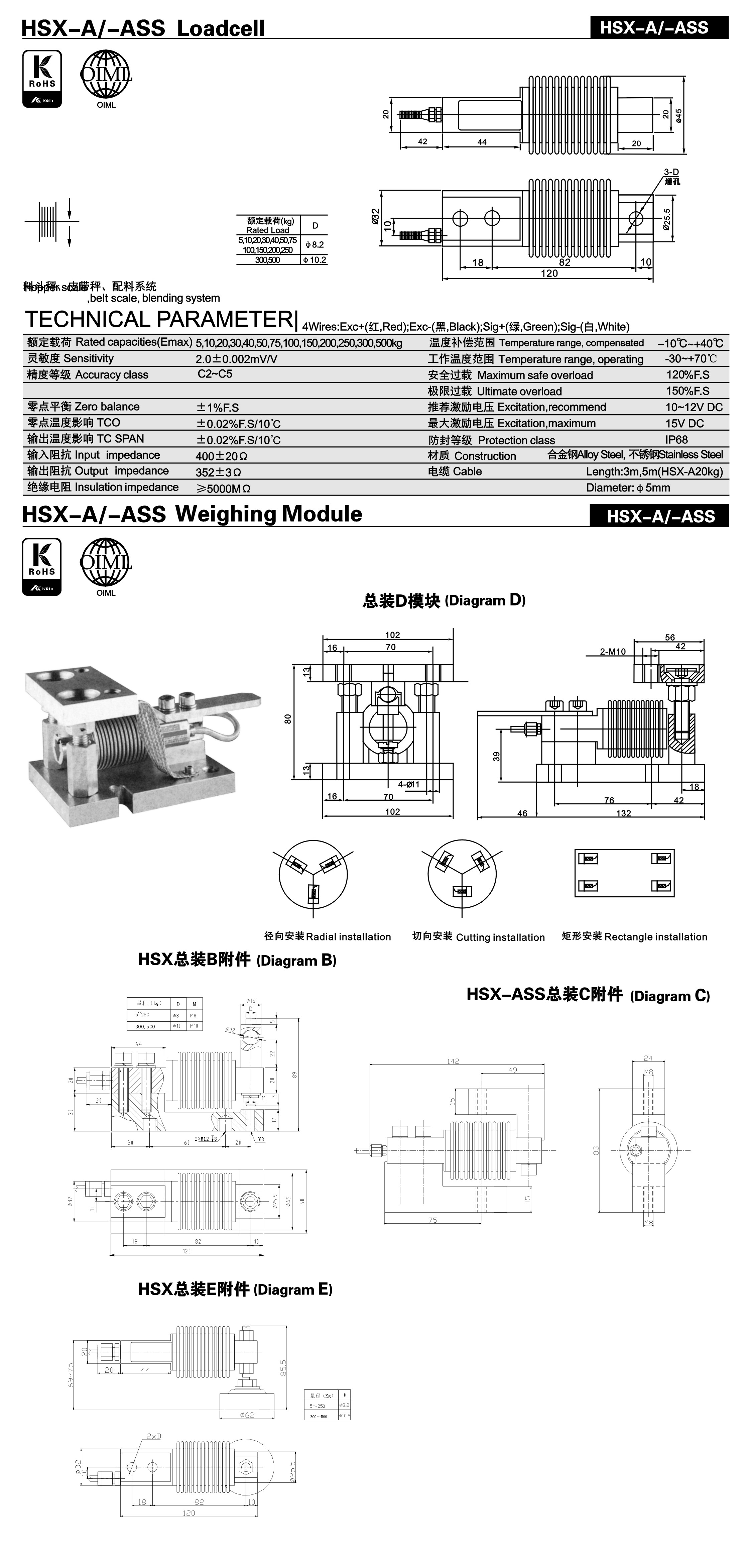 除HSX-ASS-100KG其它型號傳感器詳情請點擊:美國SUNCELLS稱重傳感器
